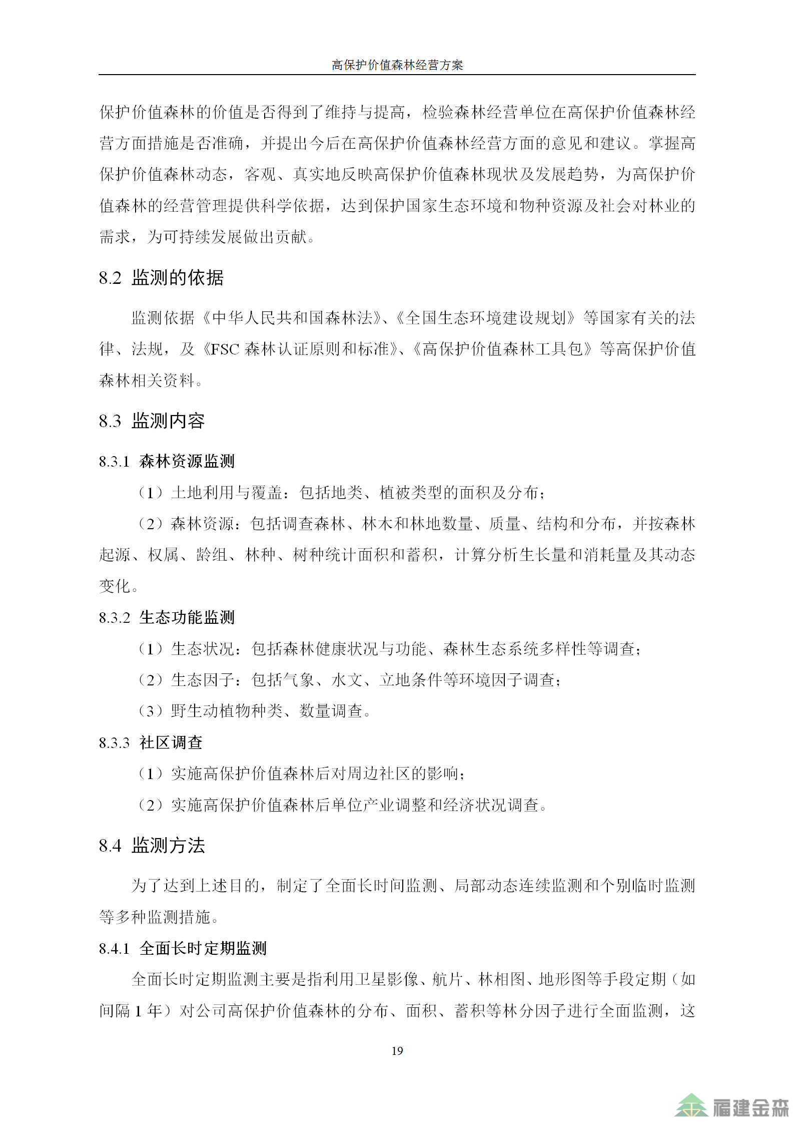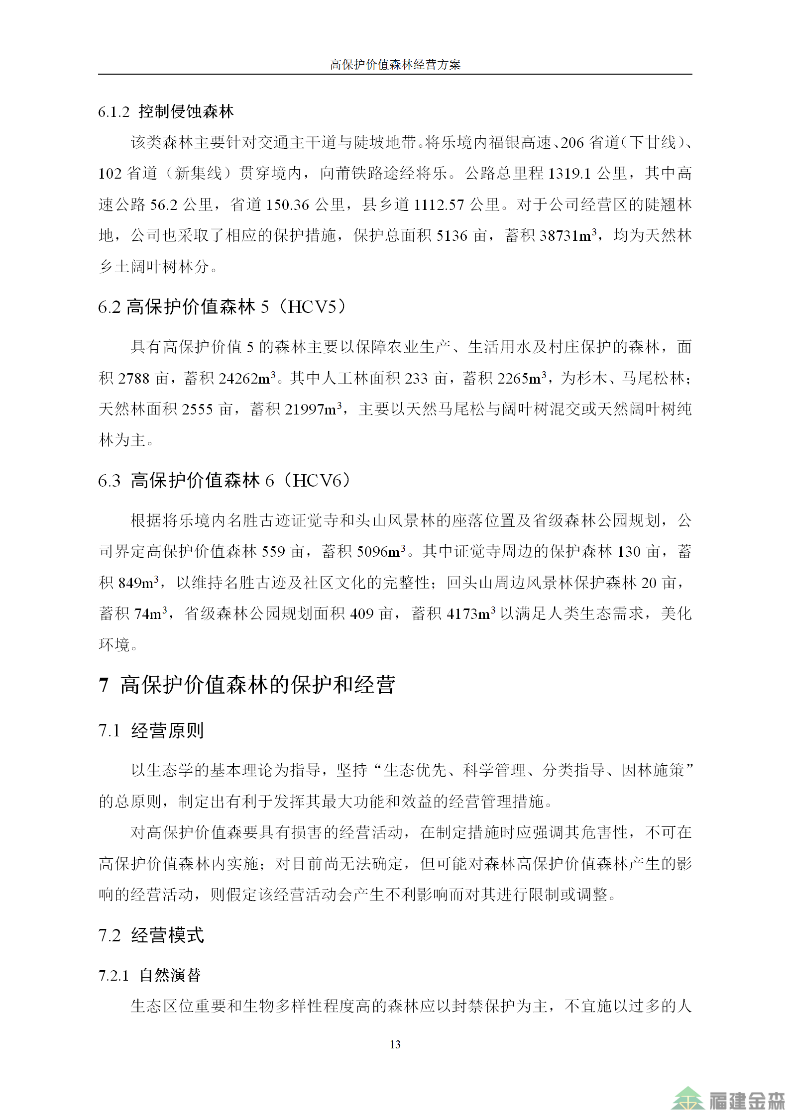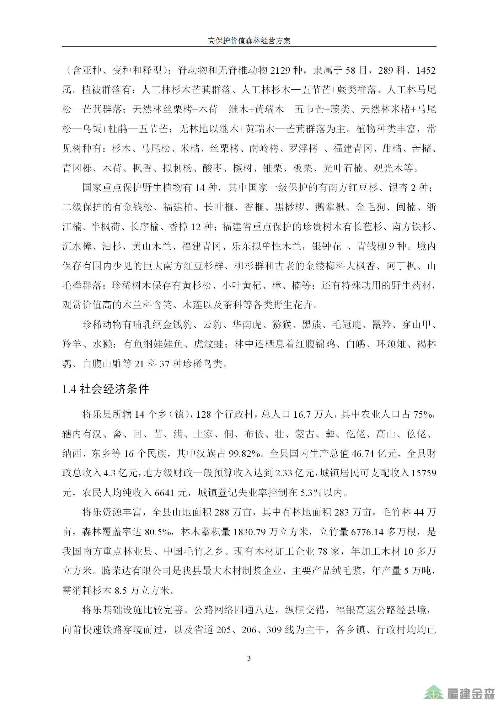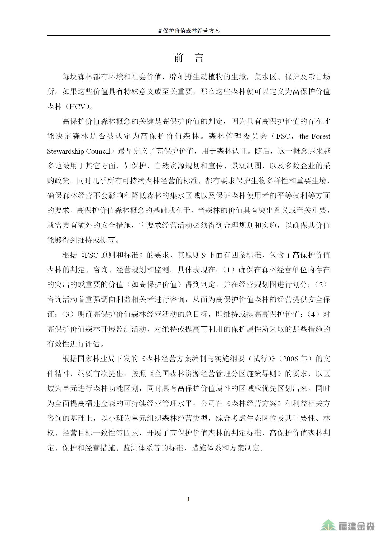 福建金森林業(yè)股份有限公司高保護價值森林經(jīng)營方案
