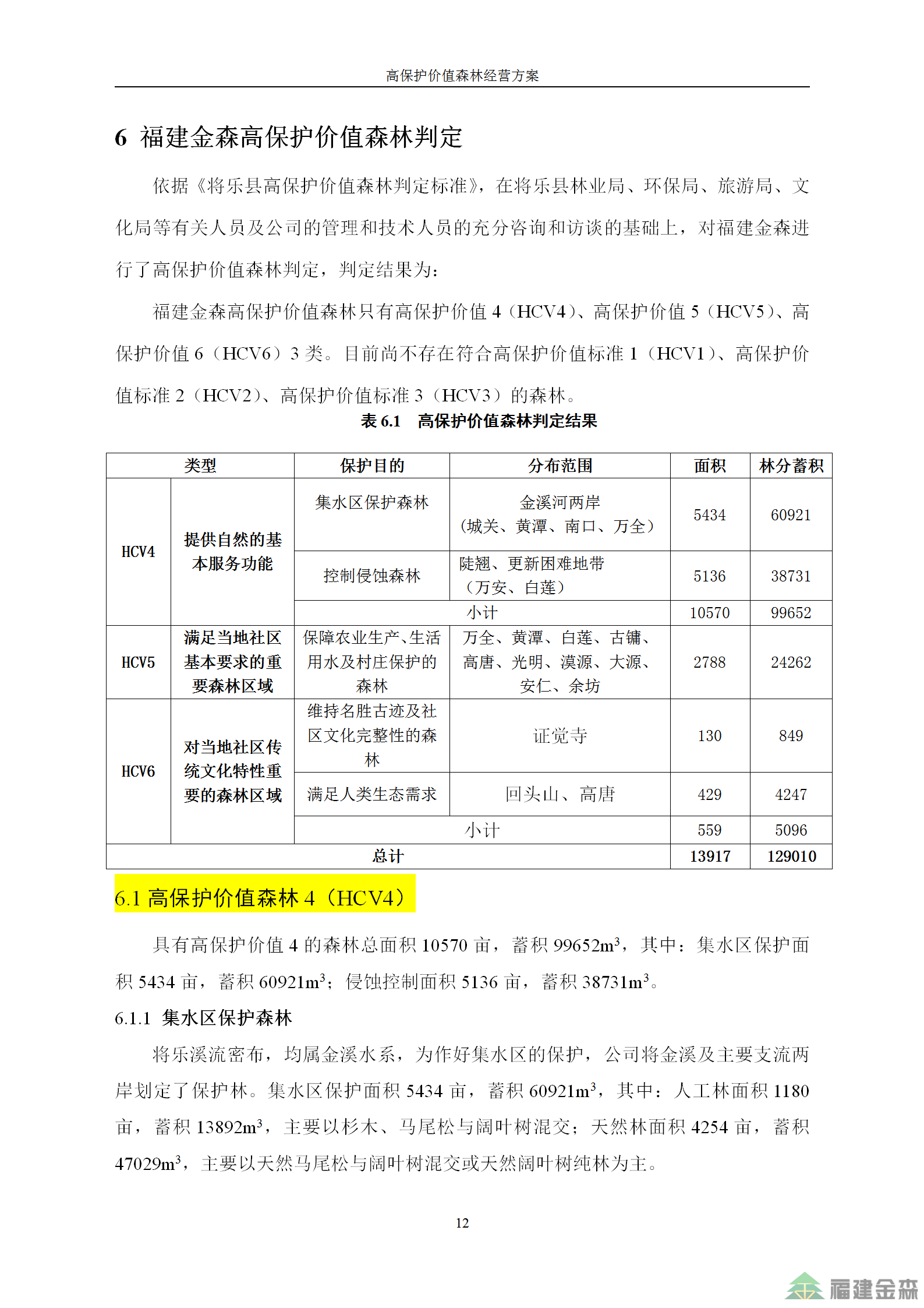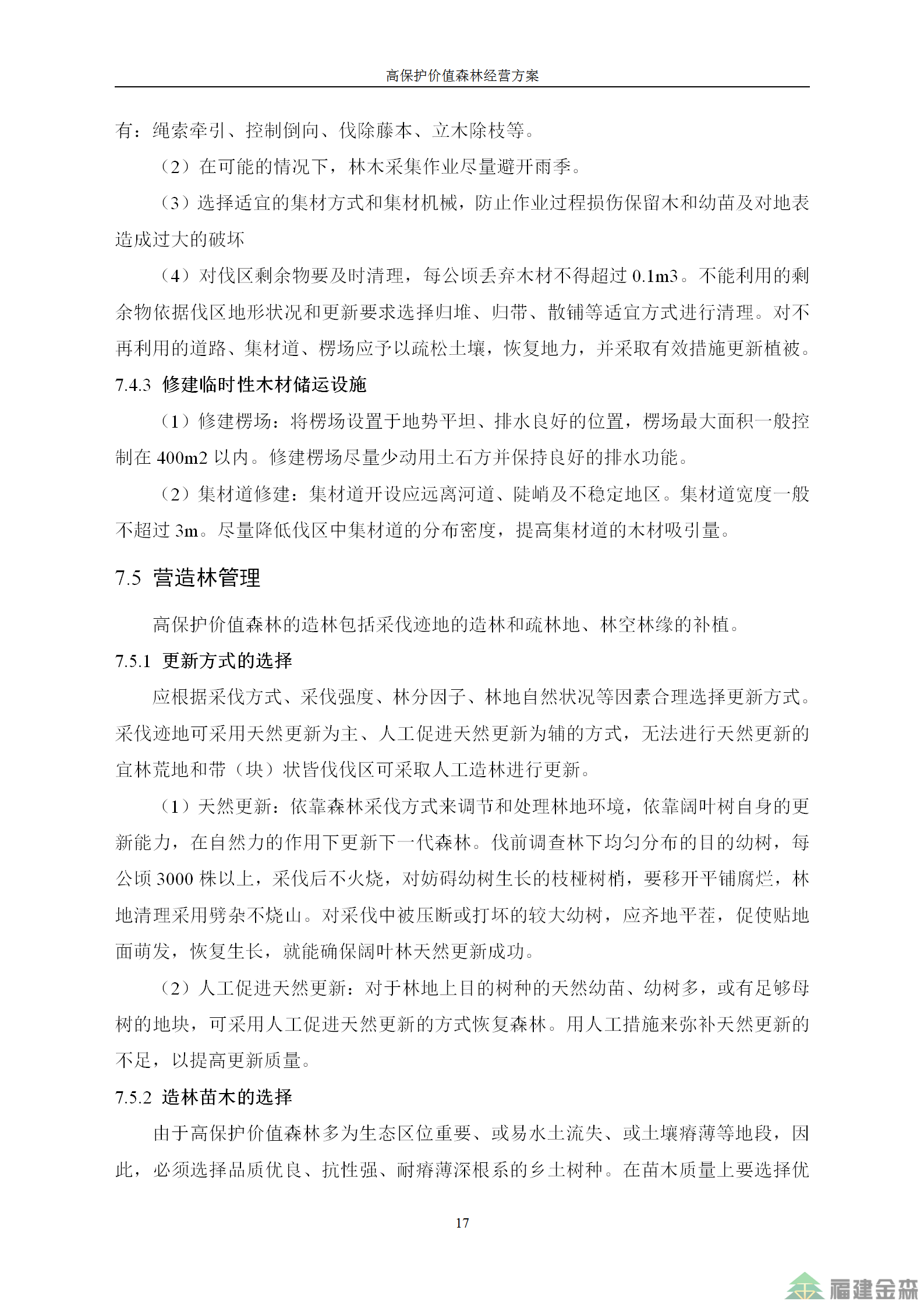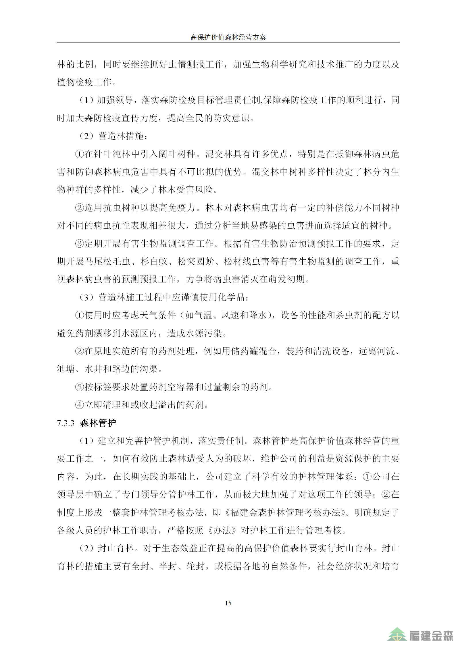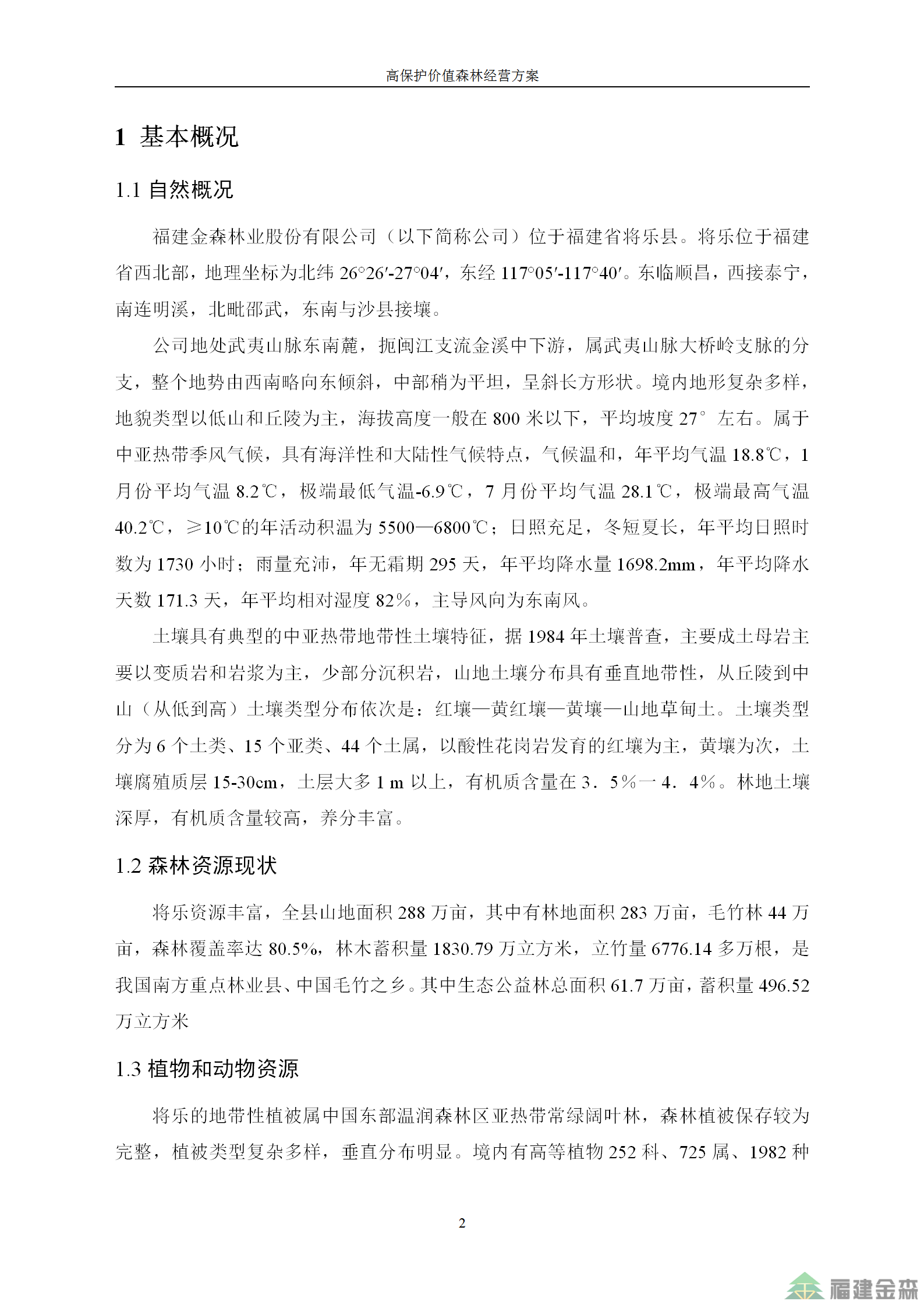 福建金森林業(yè)股份有限公司高保護價值森林經(jīng)營方案